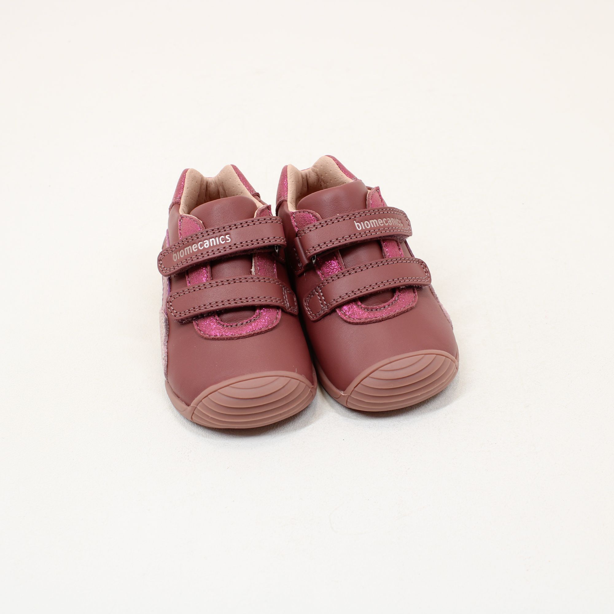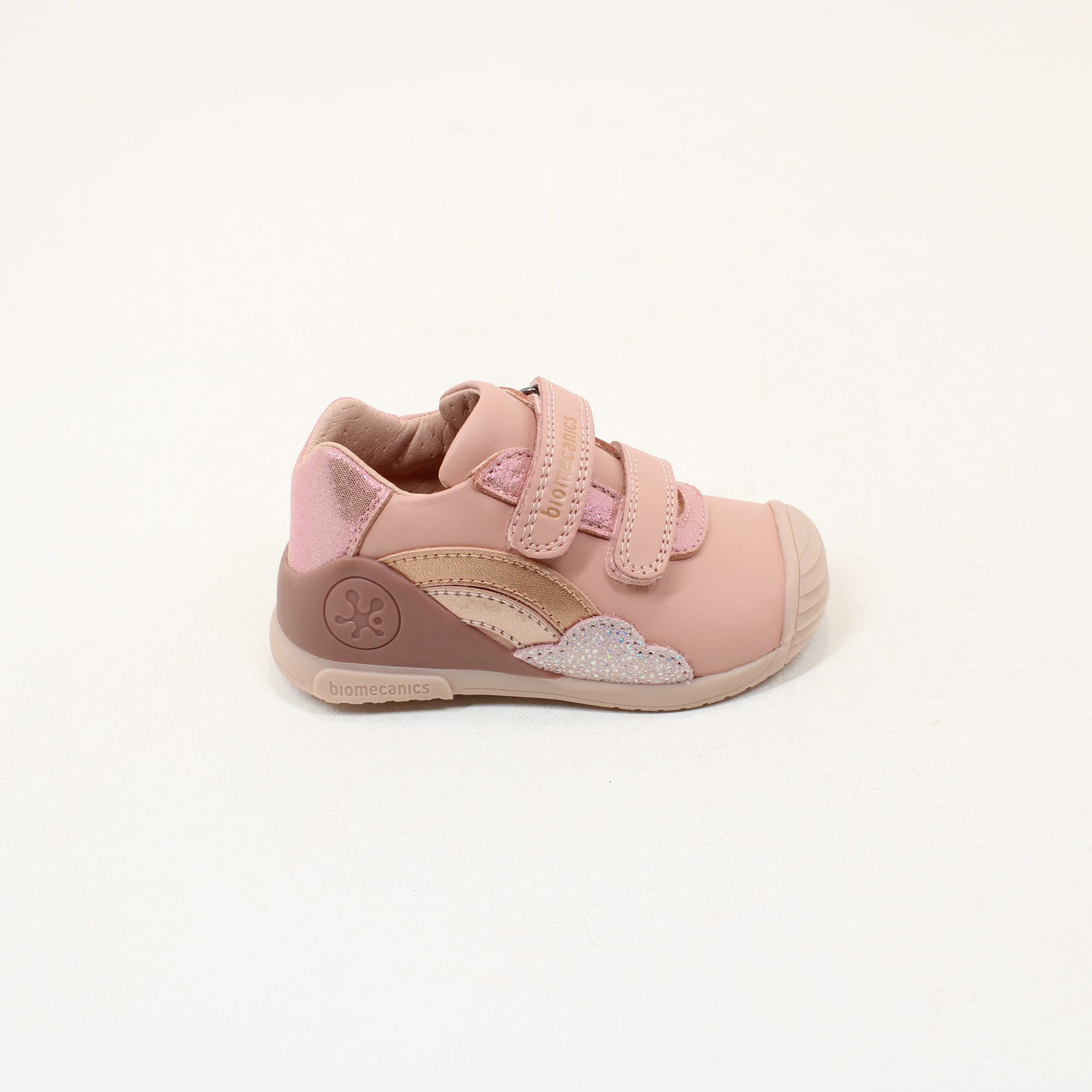 Add a little pink to your little ones outfit with this cute girls shoe from Biomecanics. Designed in a deep dusty pink leather and synthetic material, and fastened with two velcro straps. Featuring moisture control, odour and bacteria free, always dry and ventilated feet. Finished with Biomecanics branding to the strap and a cute rainbow design to the side.