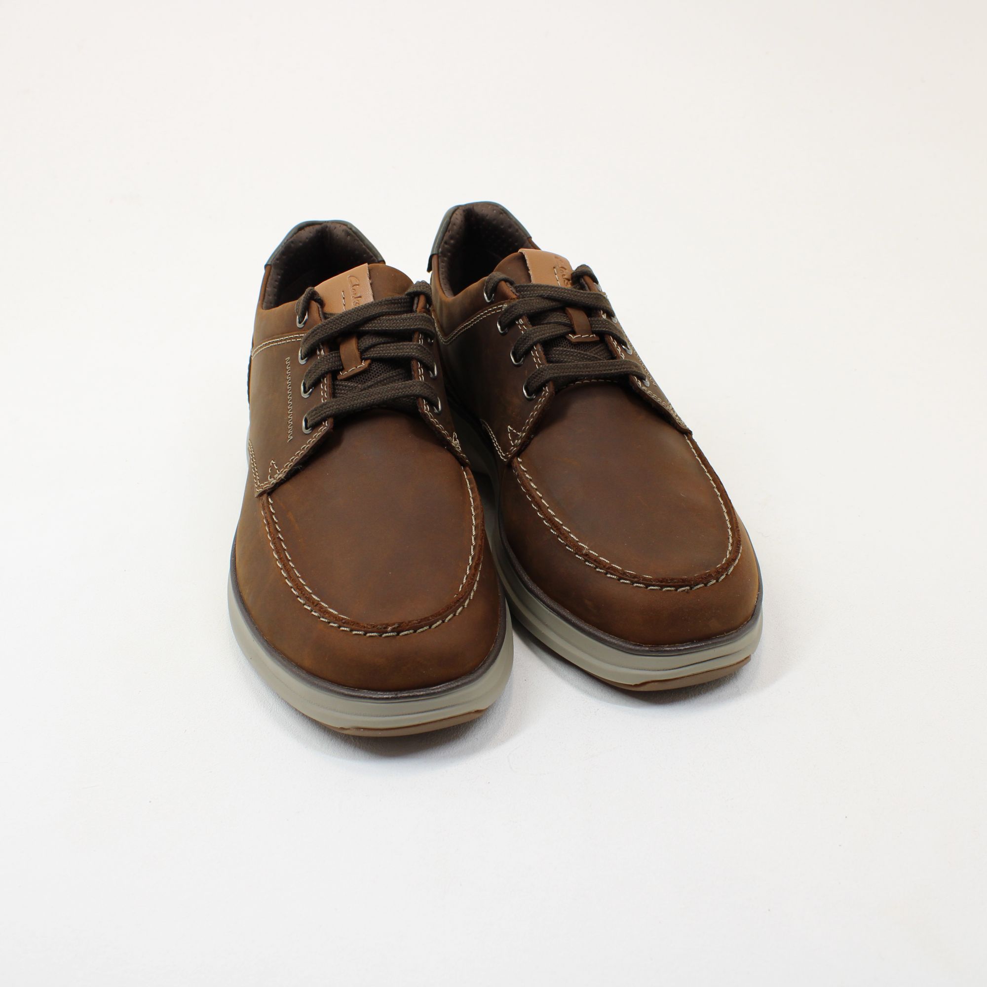 Introducing Mullan Moc – the ultimate comfort casual shoe built for everyday wear. This versatile shoe features an accommodating silhouette and premium leather upper, showcasing classic Clarks craftsmanship. With a contoured EVA footbed and lightweight EVA midsole, it delivers underfoot ease all day, making it a staple for any wardrobe.
