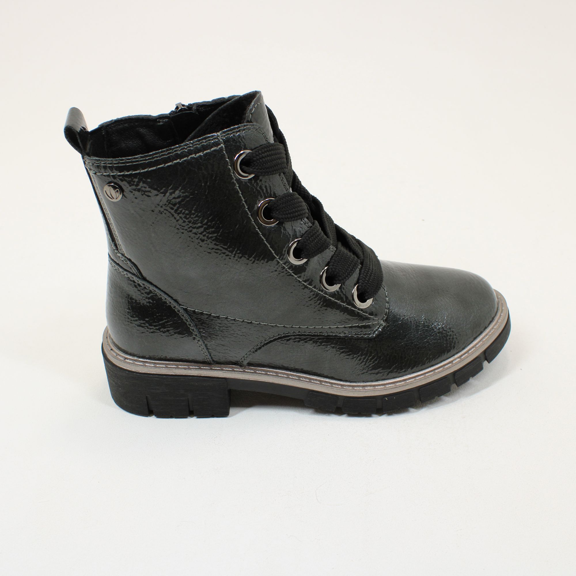 A great addition to any stylish wardrobe is the Lotus Jojo ankle boot. Resting on a heavy cleated sole unit and featuring chunky laces and a high shine patent upper, this women’s purple boot looks great teamed with a whole host of looks from favourite denim pieces to maxi dress options. This women’s round toe boot also incorporates a side zip fastening, so that the laces need not be adjusted when popping this boot on/off.