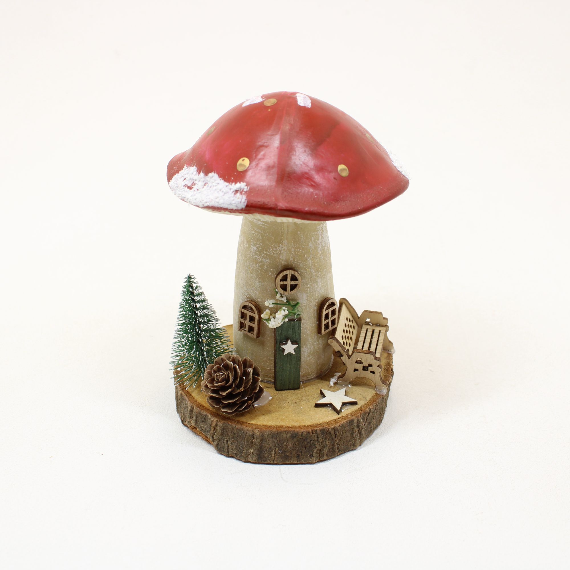 Transform your space with our enchanting small mushroom house decoration, a whimsical piece that brings a touch of fairy-tale charm to any setting. Nestled beside a beautifully crafted tree, this exquisite ornament captures the imagination and adds a delightful focal point to your home or garden. Perfect for collectors and lovers of unique decor, this mushroom house is not just a decoration; it’s a statement of elegance and creativity that invites warmth and wonder into your life. Elevate your decor with this charming piece and let your surroundings tell a story of magic and beauty.